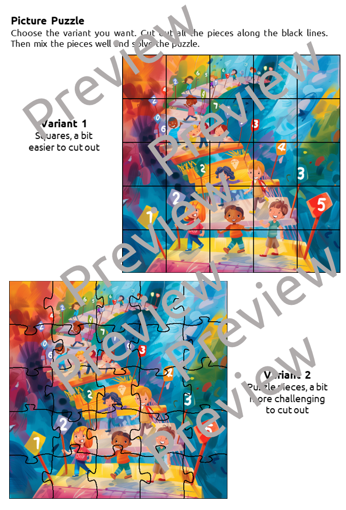Die Aufgaben können sich also in den Bereichen Deutsch, Kunst, Mathematik, Heimat- und Sachkunde usw. bewegen und sind für Kinder im Vor- und Grundschulalter geeignet.