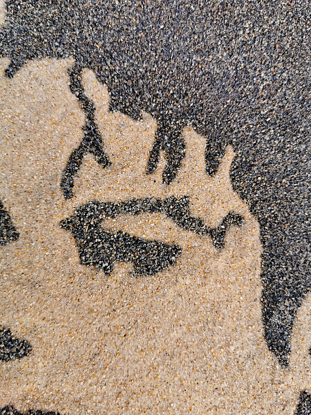 mit selbst gesammelten Sand von unterschiedlichen Stränden und zwei Händen erstellt.