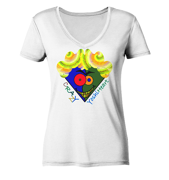 Crazy YoshiHeart – Das verrückte Herz – blau/grün – Ladies V-Neck Shirt